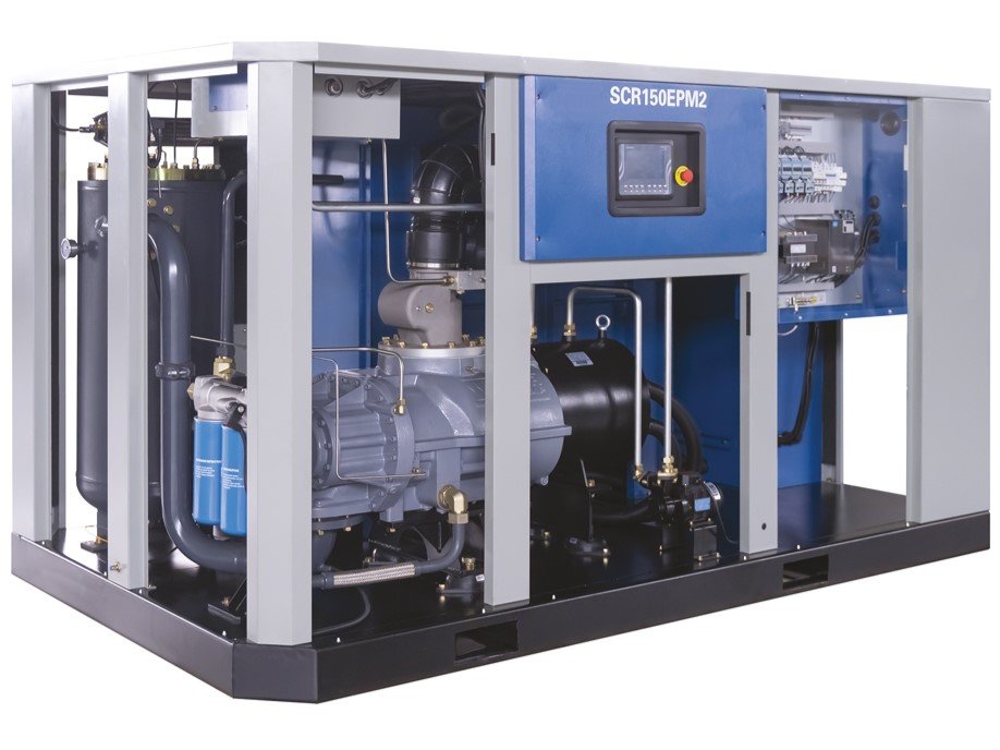 Srdcem každého šroubového kompresoru jsou šroubové bloky, které jsou na řadě SCR-EPM2 zkrátka obrovské a poskytují tak ohromné vyrobené množství vzduchu, že dokáží nahradit velmi často i kompresory v příkonem motoru o jeden až dva řády vyšším.